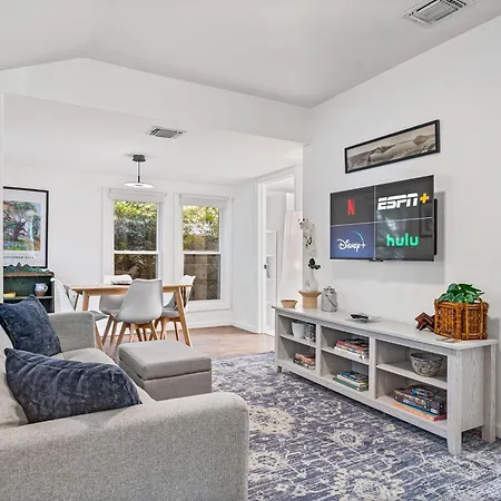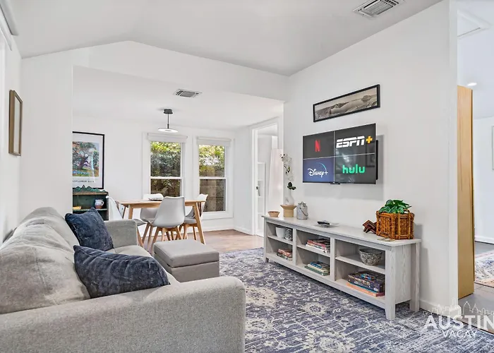 Welcome to the charming Walk To E. Austin Hotspots 2Br 1Ba W Parking Dog-Friendly By Austin Vacay, a delightful oasis situated just a short drive from the vibrant heart of Austin. This inviting retreat comprises two beautifully appointed bedrooms and one modern bathroom, ensuring a comfortable stay for couples, families, or friends seeking an urban adventure. The pet-friendly policy means you won't have to leave your furry companions behind while exploring all that the city has to offer.